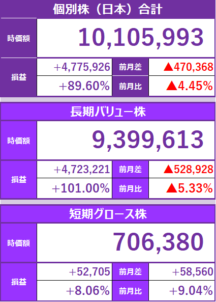 マーケットが大きく伸びた中ですが、日本株のマイナスもあり全体としては微増にとどまりました🥲