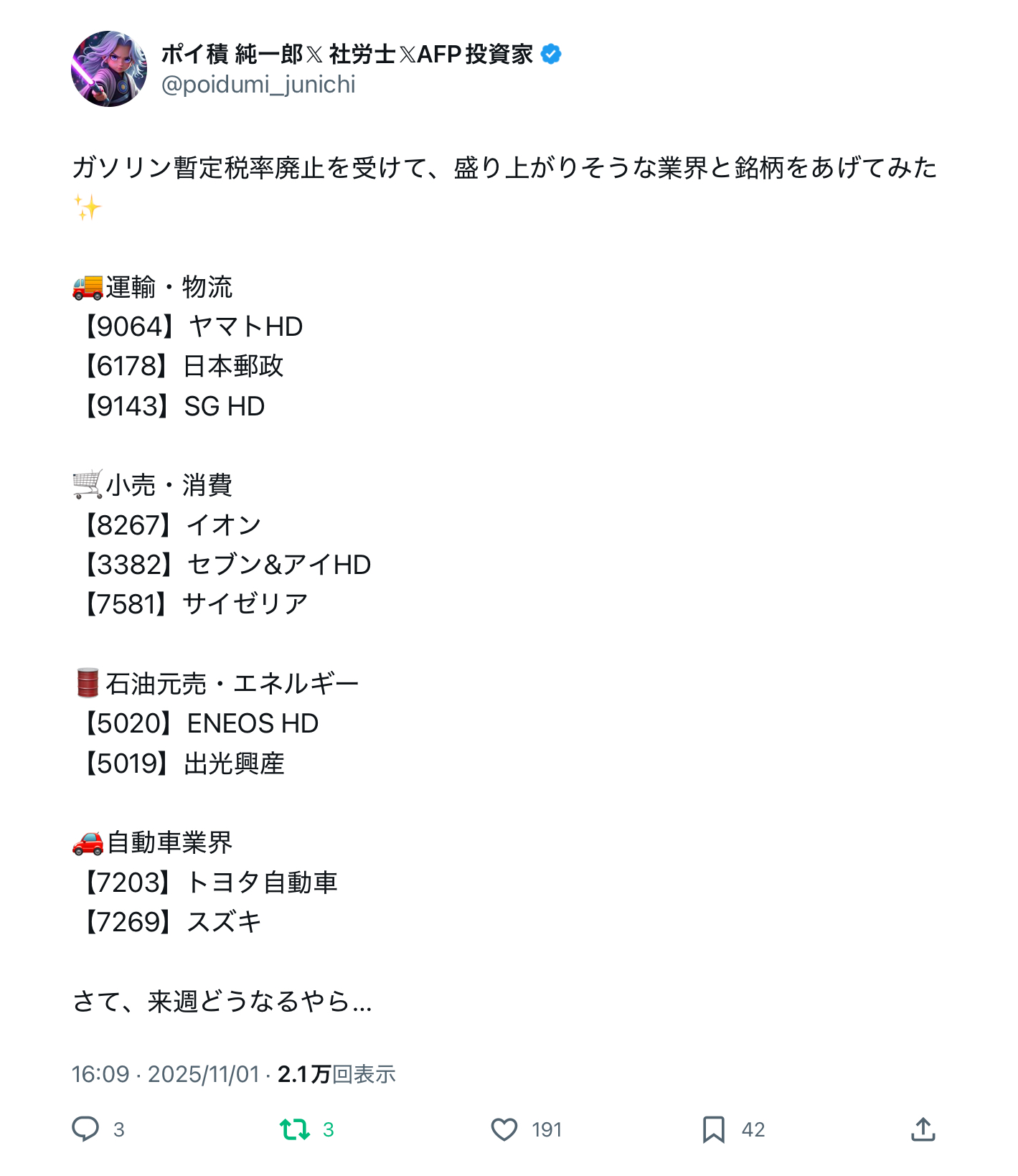 前祝いの高市銘柄プチバズを掲載して報告を終わります🫡