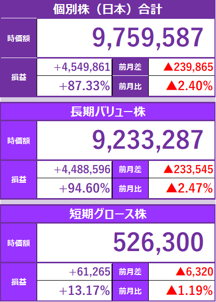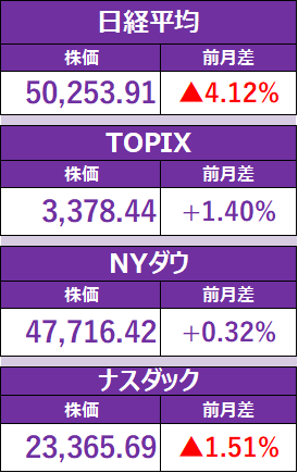 マーケット環境に記載の通り、AI関連銘柄を中心に下げた日本株ですが、ポイ積ポートフォリオに占める割合の多い我が社の株価が大きく下げたことから、トータルマイナスで終わりました🥲