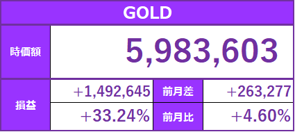GOLDが復活してくれたのが大きい要因となりました🪙