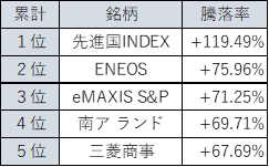 上昇率トップ5