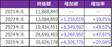 資産の増加が実額6百万円強で、増加率にすると前2年に比べて増加スピードが鈍化💦