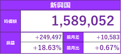 新興国も堅調ではあるものの、ブラジル債券の爆下げをベトナム・アフリカその他でカバーと明暗⤵️⤴️
