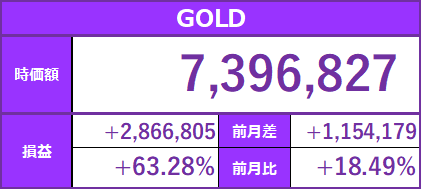 これからの闇が待ち受けますが、1月に限ってい言えば我が軍の+130万円のうち、+110万円がゴールド様によるもの🔥