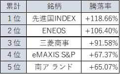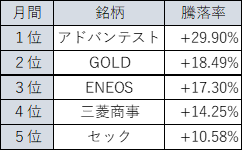 上昇率トップ5
