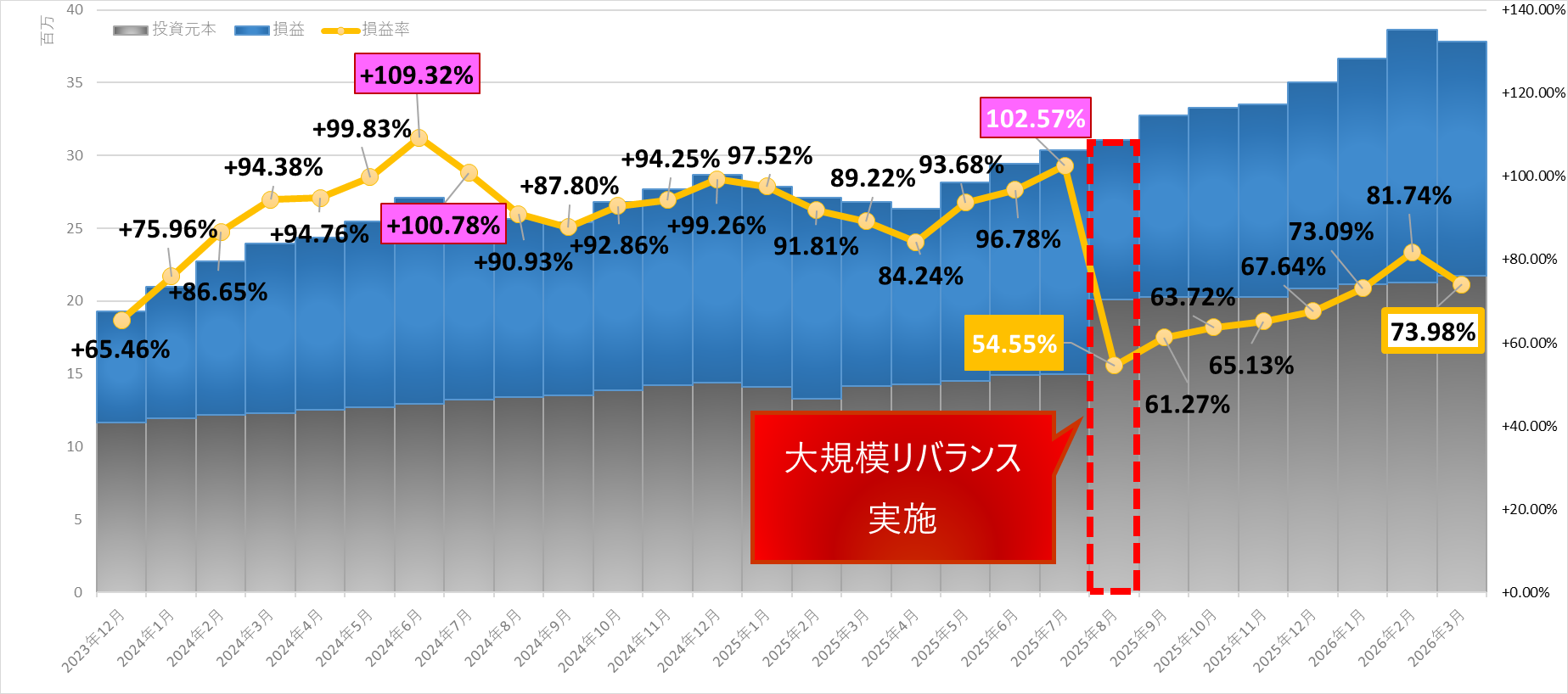 これまでの10か月続伸していた資産増加も残念ながら3月でストップ😢