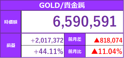 GOLDのマイナスも10%を超えましたが、他の銘柄に比べてインパクトが大きい…
