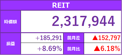 凪になりがちなREITが、先月+8%からの今月▲6%🌊