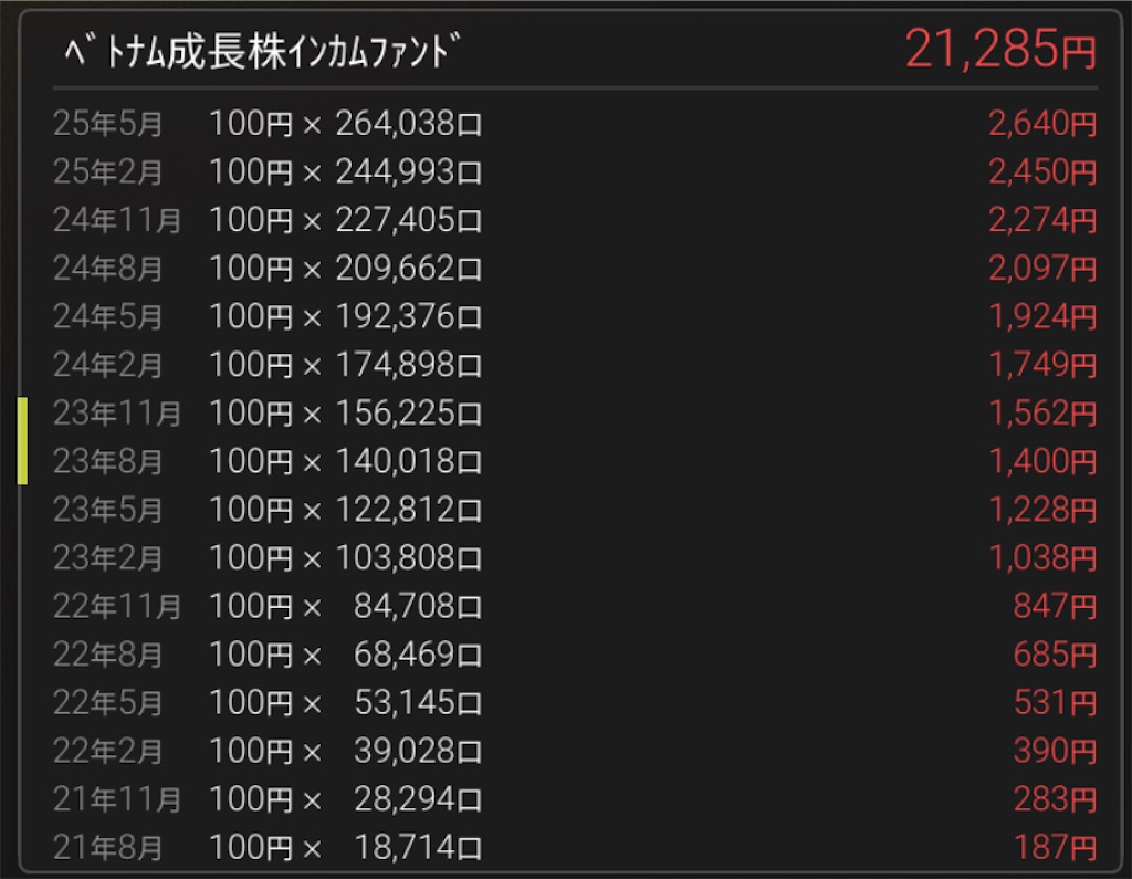 ベトナム上場企業の中でも、成長性が高く、かつ安定した配当を出す銘柄に厳選投資をしています。これにより、値上がり益とインカムゲインの両方を狙える構造となっています。