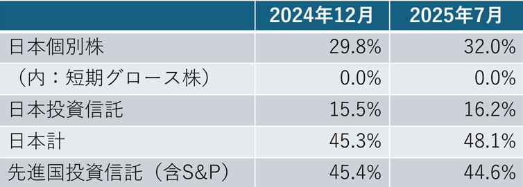 こうした中で、一部資産(特に日本株)が過剰に膨らみ、ポートフォリオ全体のバランスが崩れるリスクが顕在化してきました。