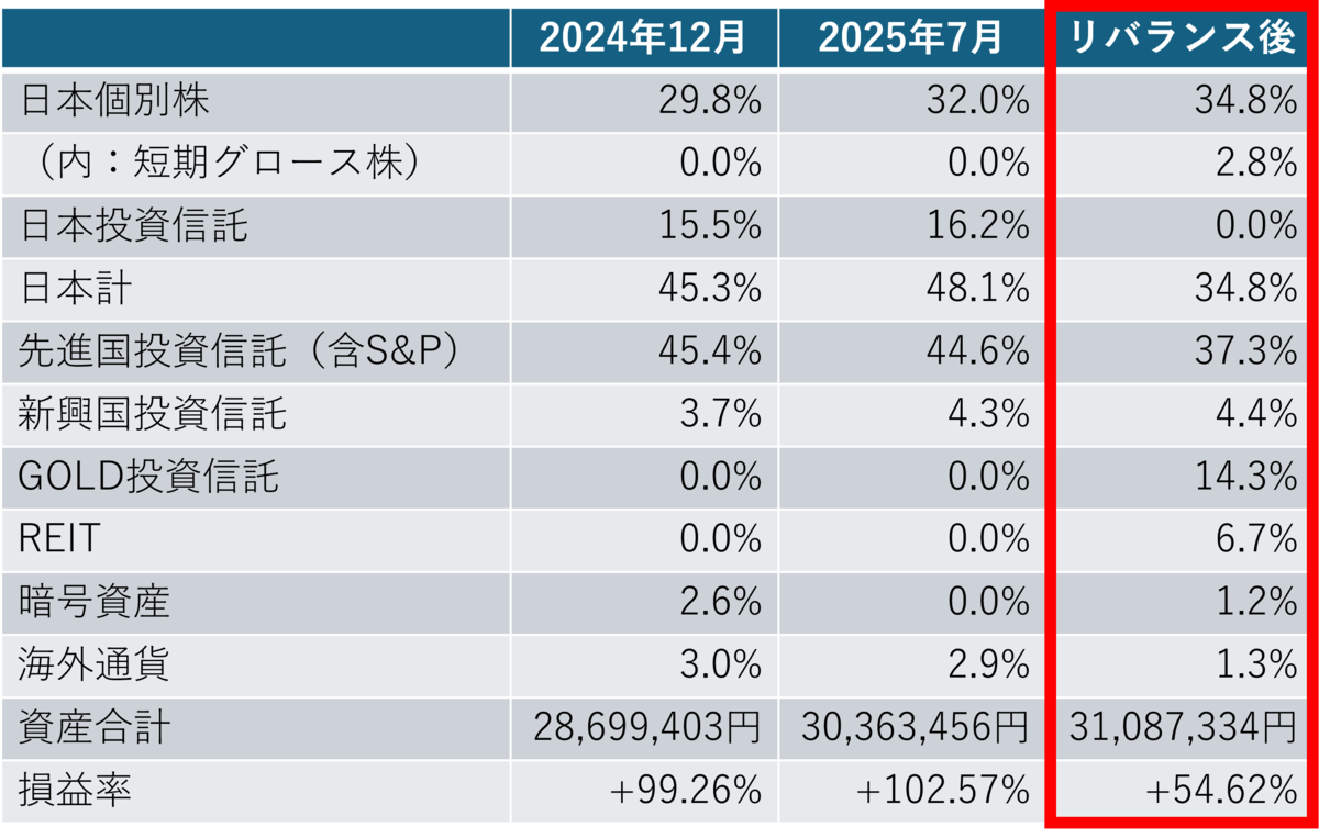 おおよそ5年単位でリバランスは検討してきましたので、前回2021年から4年後、資産形成の効率性を最大化するタイミングでもありました。