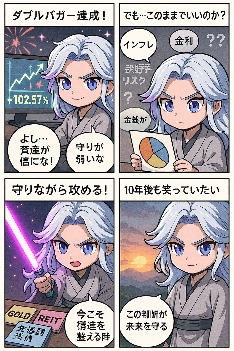 その後3ヶ月連続で爆益を記録し2025年7月に再度総資産がダブルバガー(+100%以上)を達成。8月も成長を続けていました。